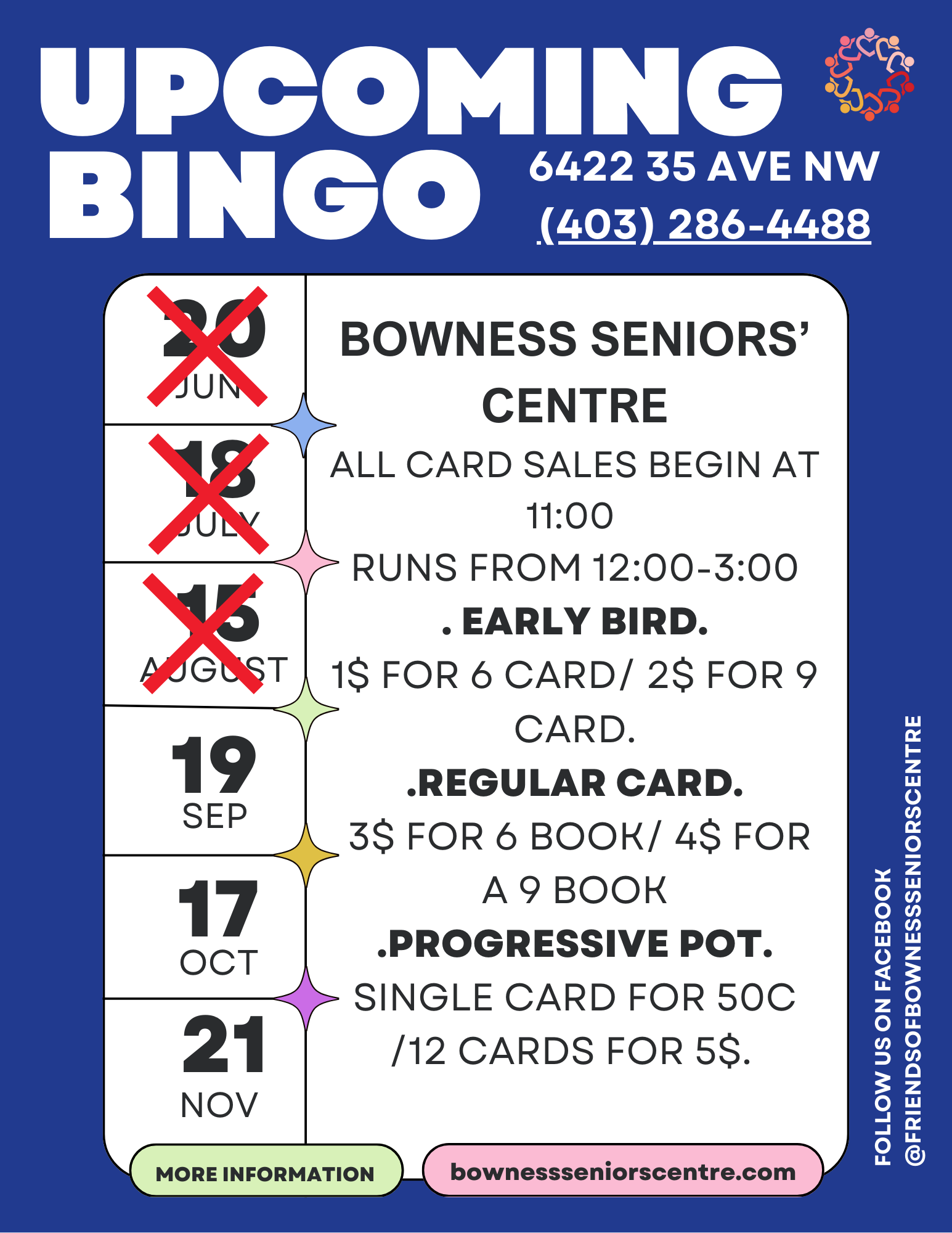 Join us every Friday for our monthly bingo at the Bowness Seniors Centre! Card sales begin at 11:00 AM, and bingo runs from 12:00 PM to 03:00 PM. We can’t wait to she you there! When March 21, April 25, May 16, June 20, July 18, August 15, Sept 19, Oct 17, Nov 21. […]