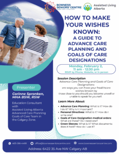 If you have a topic or presentation that you would like to see, please contact the office at 403 286-4488 or email us at office@bownessseniorscentre.com